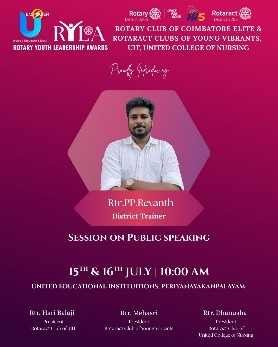The event commenced with a welcome address by Ms.Dhanusha President of the Rotaract Club of United College of Nursing, followed by an inaugural address by Er.Shanmugam, Chairman, and United Educational Institutions. Experts in the field of personality development and leadership conducted interactive sessions focusing on: