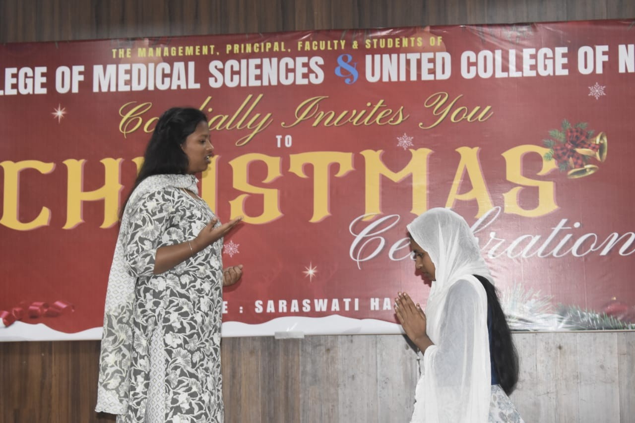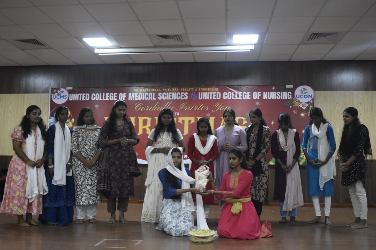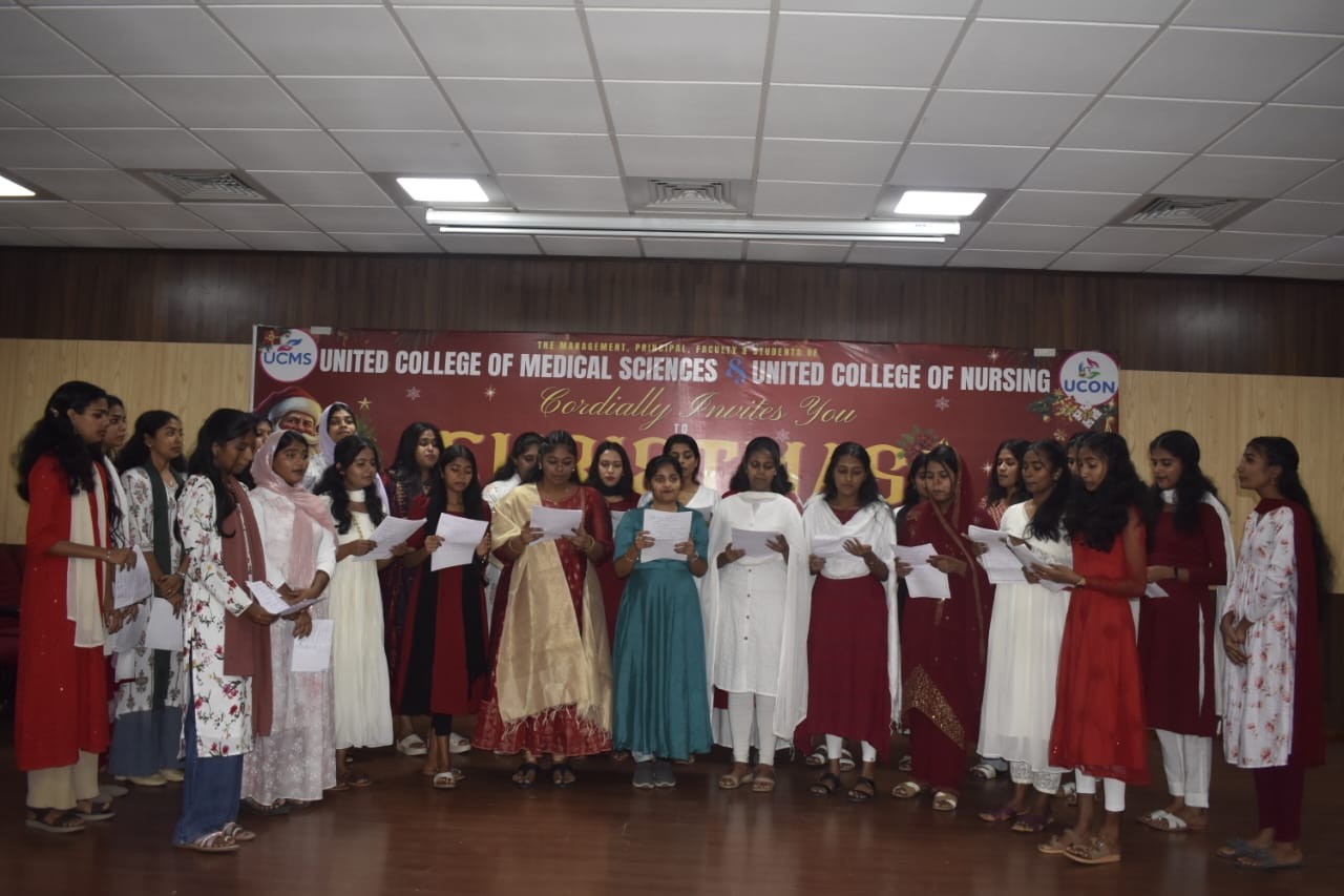 The Student Nurses Association of United College of Nursing organized a Christmas celebration on 22nd and 23rd December 2025 to spread the message of love, joy, and togetherness among students and staff On 22.12.2025, a colourful flash mob and Christmas carol singing were conducted in the college campus. The student nurses enthusiastically performed a flash mob to Christmas-themed songs, creating a joyful and festive atmosphere. This was followed by melodious carol singing, which conveyed the true spirit of Christmas and was well appreciated by everyone present.